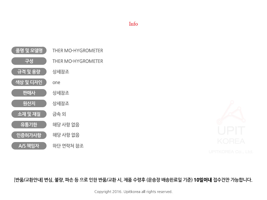 • 반품/환불조건: 도착후 1주일 이내 사용하지 않은 상태에서 가능합니다,초기제품 이상의 경우 동일한 제품으로 1:1 교환원칙, 사용후 제품이상은 A/S를 원칙으로 합니다,