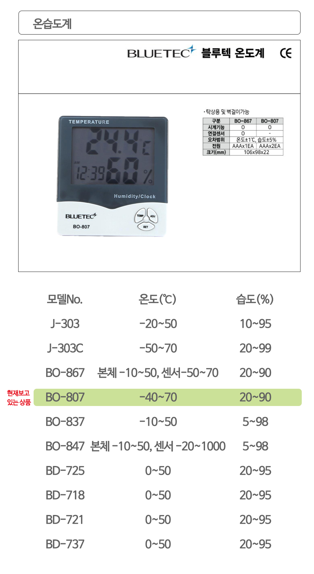 블루텍 온습도계 J-807 탁상용 벽걸이 가능 이미지/