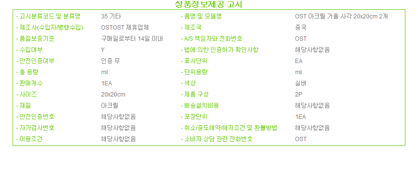SNW 아크릴 거울 사각 20x20cm 2개 이미지/