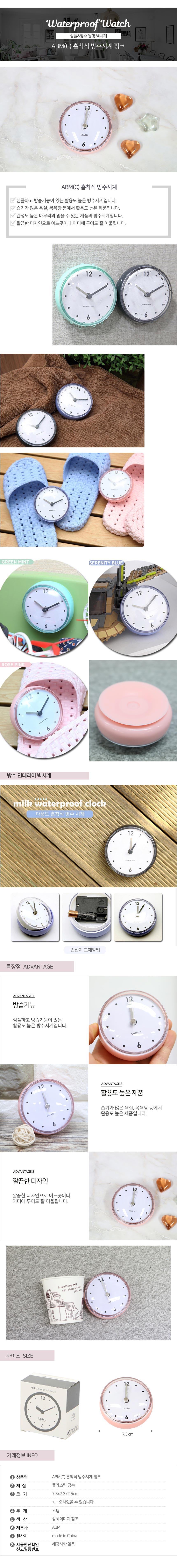 목욕탕 욕실용 흡착식 원형 방수시계 핑크 이미지/