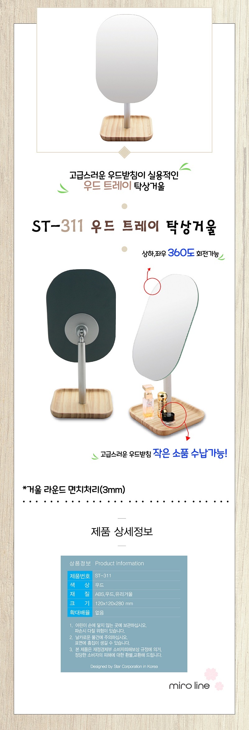ST-311 우드트레이탁상거울/우드받침탁상거울