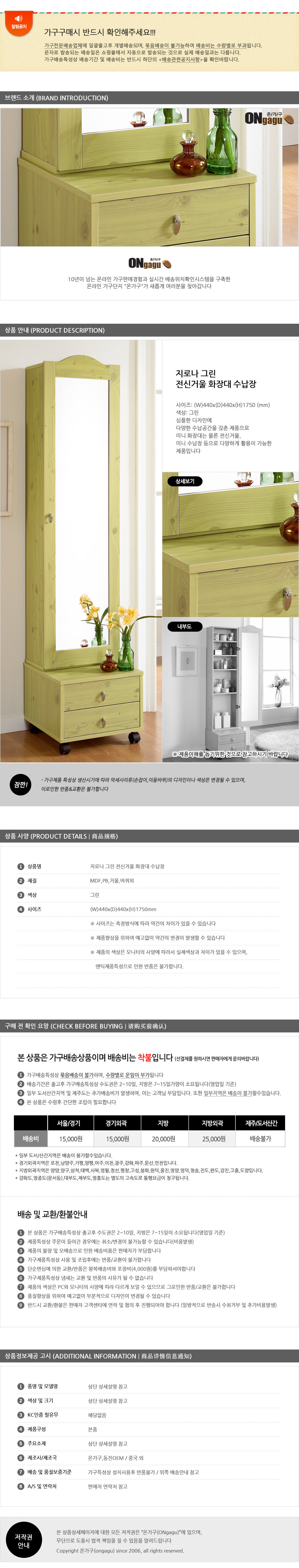 상품명: 지로나 그린 전신거울 화장대 수납장/전신경거치경인테리어소품