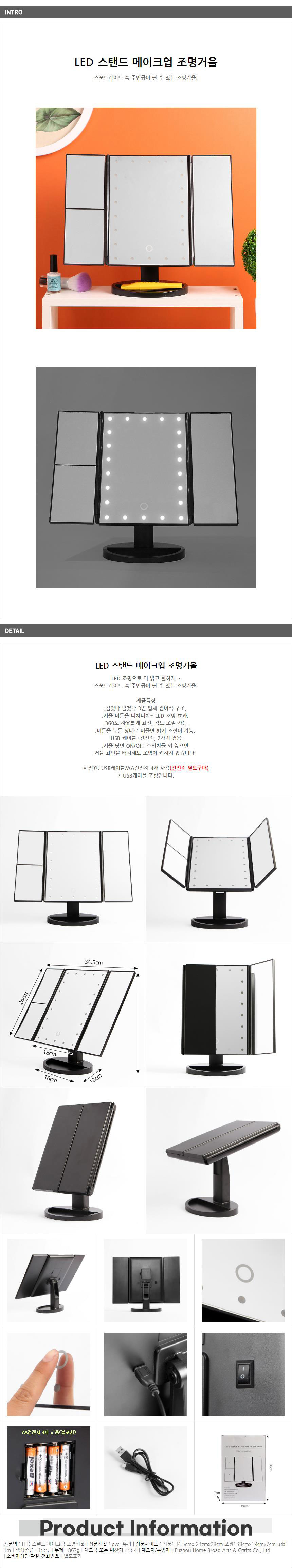 3면 접이식 메이크업 탁상 조명거울 공주거울