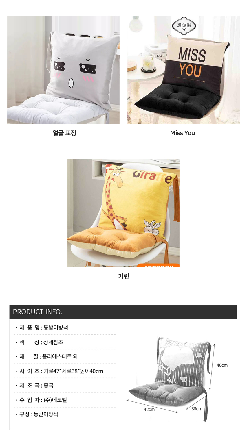 등받이방석 기린 얼굴표정 MISS YOU 의자 방석 등받이 이미지/