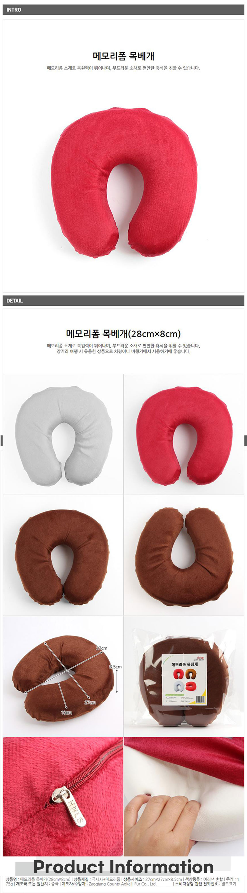 복원력 좋은 메모리폼 목베개-색상랜덤 여행용베개 이미지/