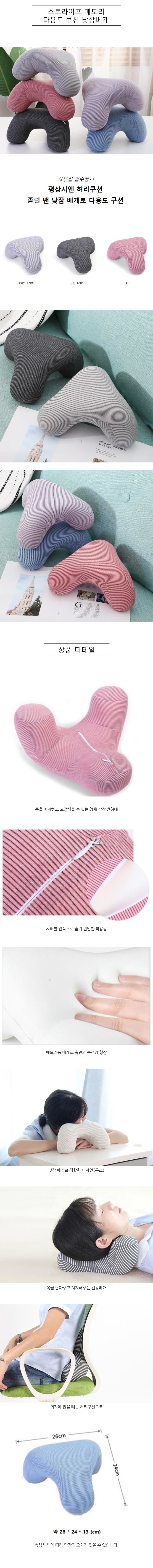 스트라이프 메모리폼 다용도 자동차 쇼파 허리 목 등 삼각 쿠션 캠핑 목 낮잠 베개