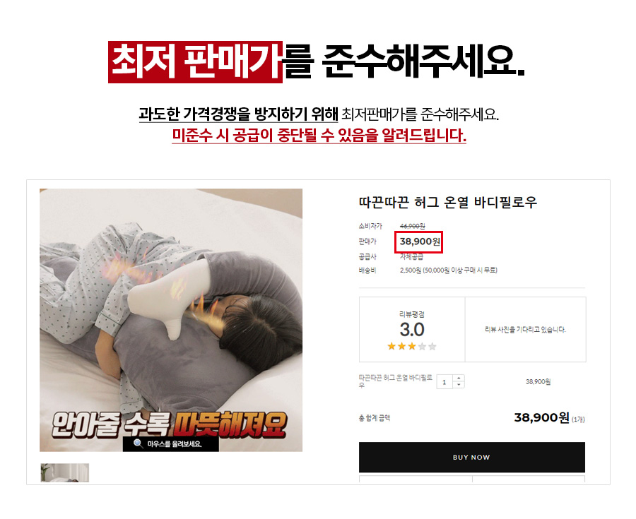 1. 품명 및 모델명 : 따끈따끈 허그 온열 바디필로우