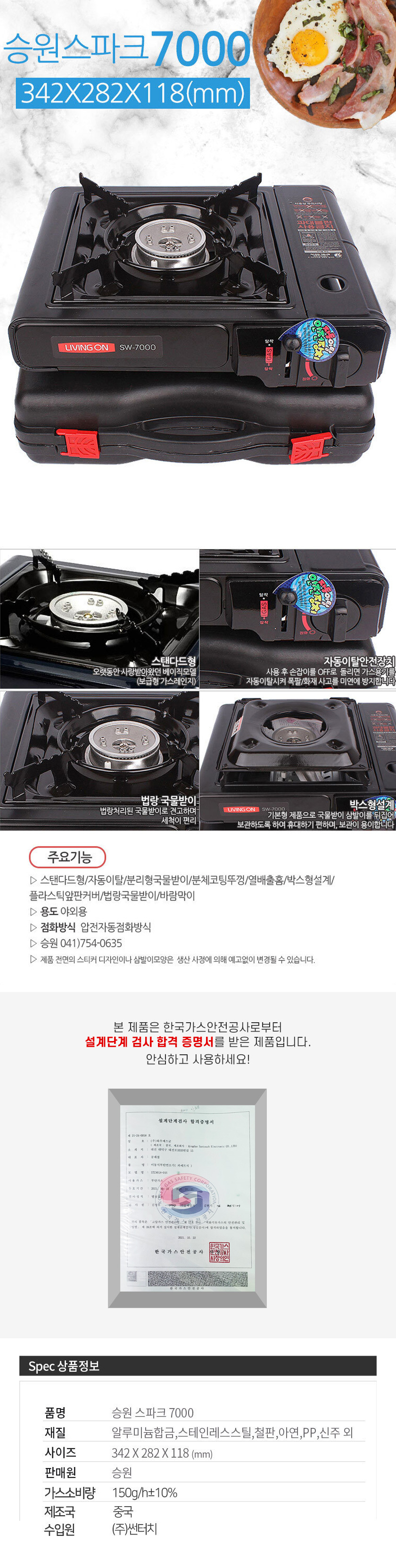 승원 스파크 7000 / 부르스타 휴대용가스렌지 버너 이미지/