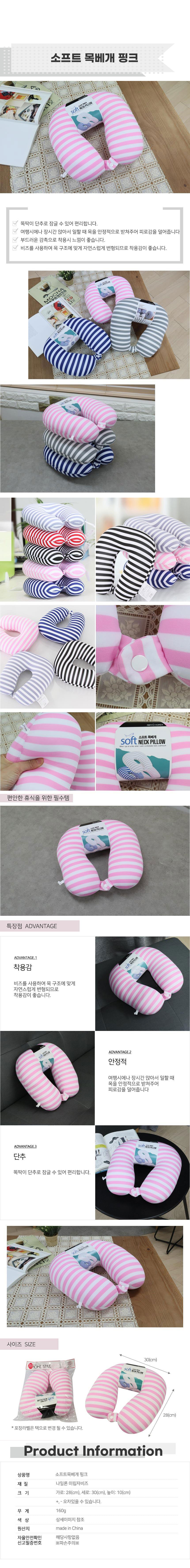 단추달린 소프트 목베개 핑크 휴대용목베개 여행용품