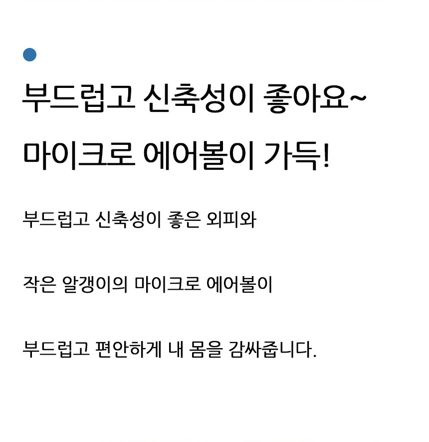 1. 제품소재 : 겉커버 - 코튼 95%, 스판덱스 5%속커버 - 폴리에스터 93%, 스판덱스 7%충전재 - 마이크로에어볼(폴리스티렌) 100%
