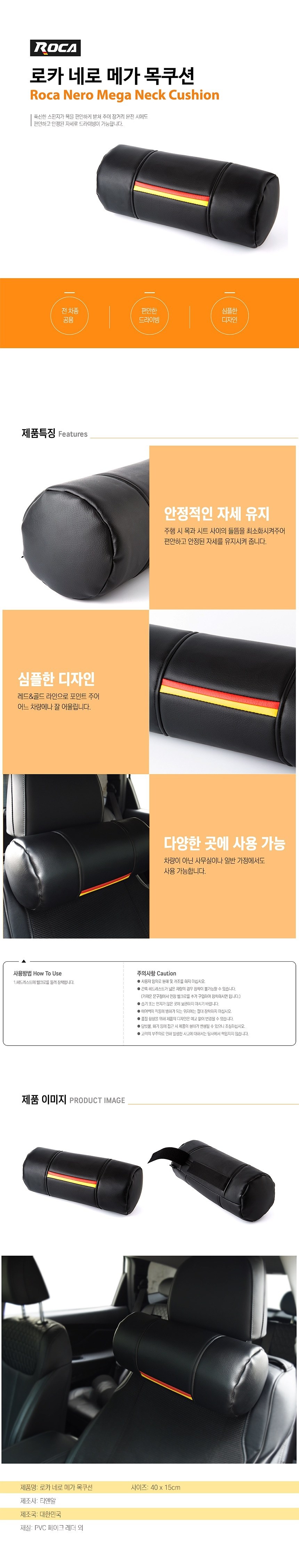 자동차 실내 꾸미기 원통형 편안한 고급 목쿠션 1P 예쁜차량용품 자동차목베개 이미지/
