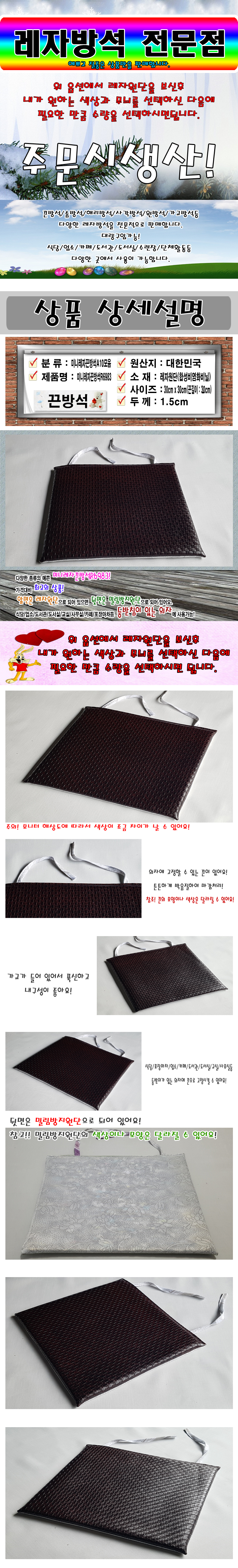 미니레자끈방석P10모음/미니끈방석/끈방석/식당/30cmX30cm 이미지/
