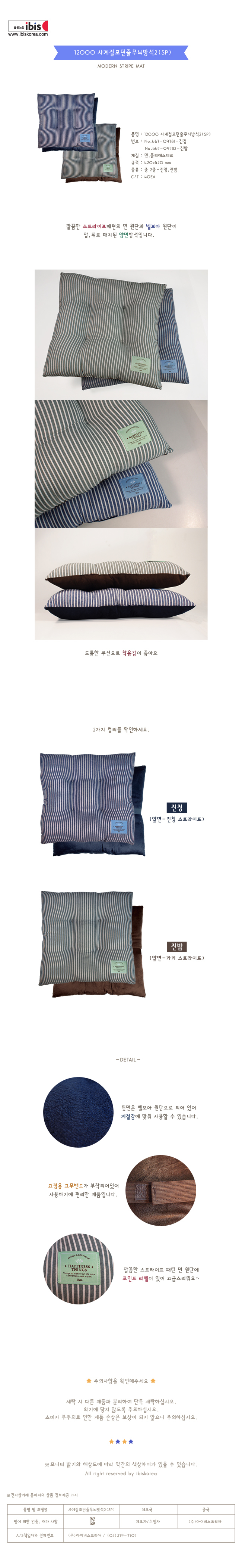 아이비스 12000 사계절모던줄무늬방석2(SP)-진청