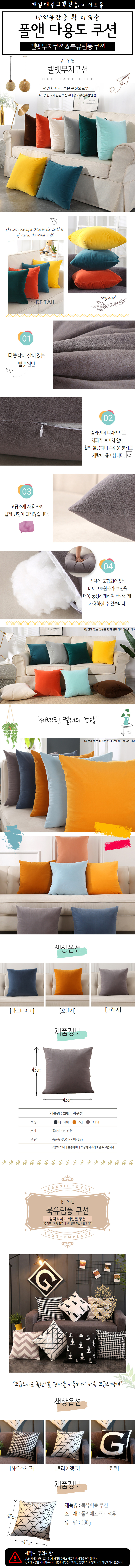 폴앤 다용도 쿠션 벨벳무지쿠션 / 북유럽풍쿠션 / 집안꾸미기 / 홈인테리어 이미지/