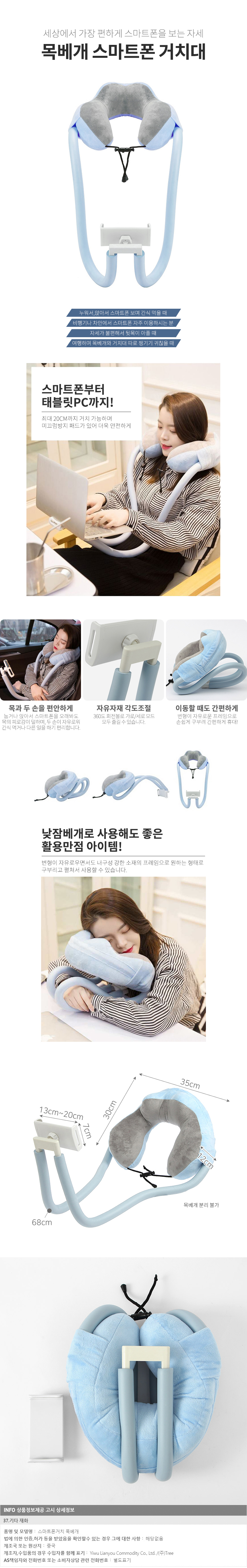 편한자세 스마트폰 거치 목베개(블루) 이미지/