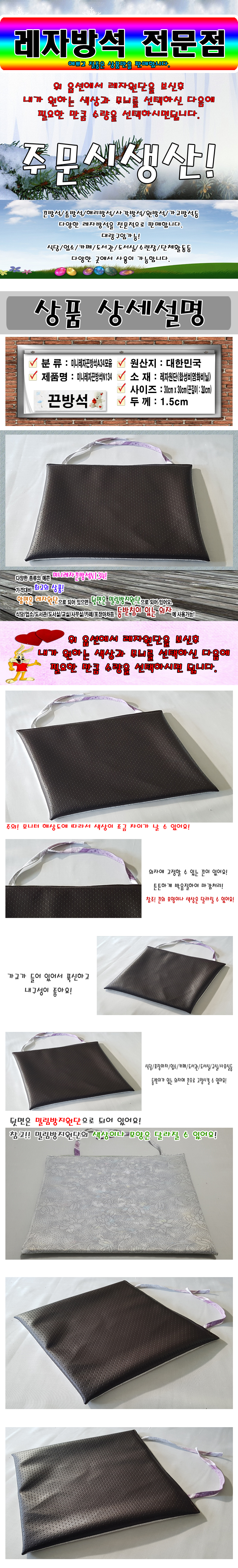 미니레자끈방석P34모음/미니끈방석/끈방석/식당/30cmX30cm 이미지/