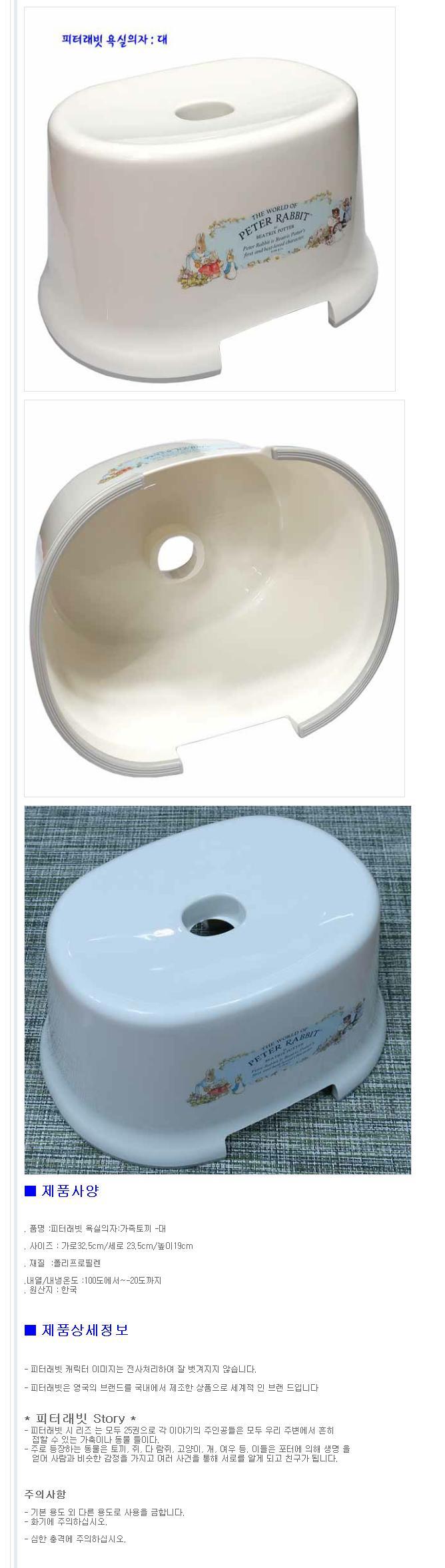 키친앤바쓰 피터래빗 욕실의자 (대) 스툴 디딤대 목욕 손빨래 이미지/