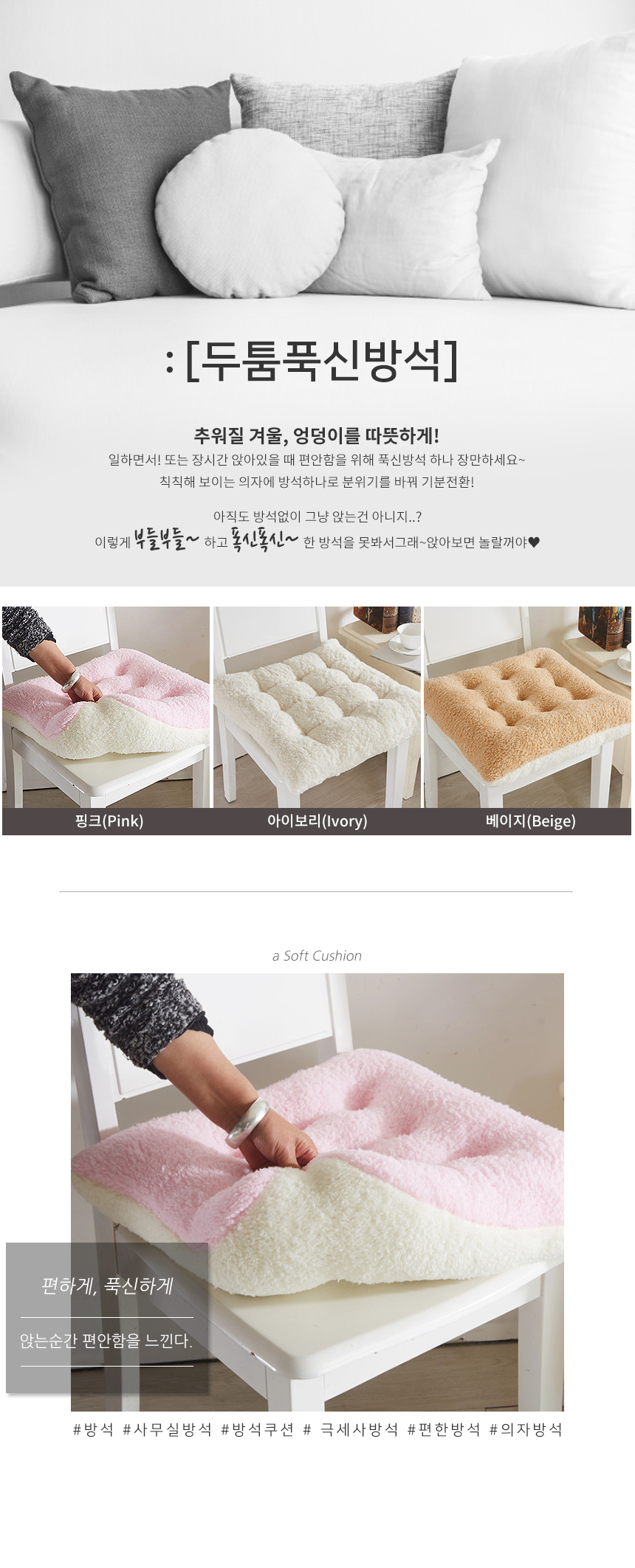 두툼푹신방석/겨울방석/사무실/쿠션/의자/극세사/양털 이미지/