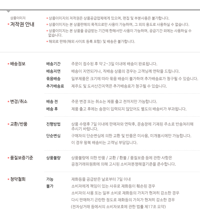 배송지역 및 주문수량에 따라 반품비가 추가될 수 있습니다.