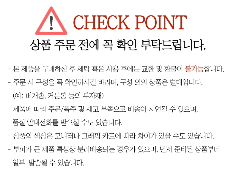 • 다른 제품과 같이 주문할 경우 따로 배송됨을 말씀드립니다.