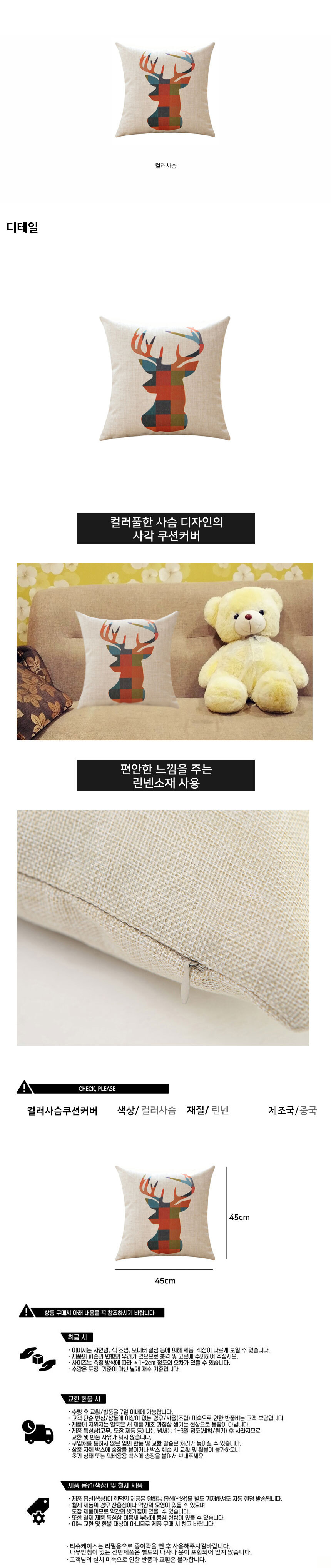 컬러 사슴 쿠션커버 A61628