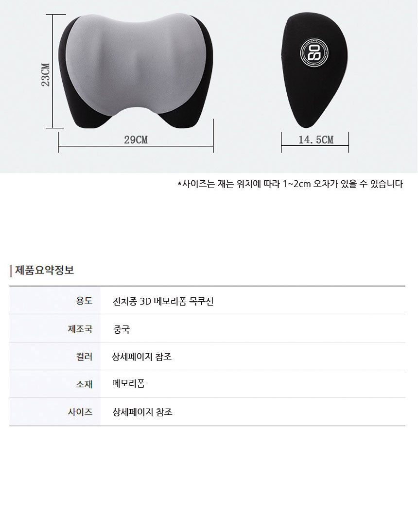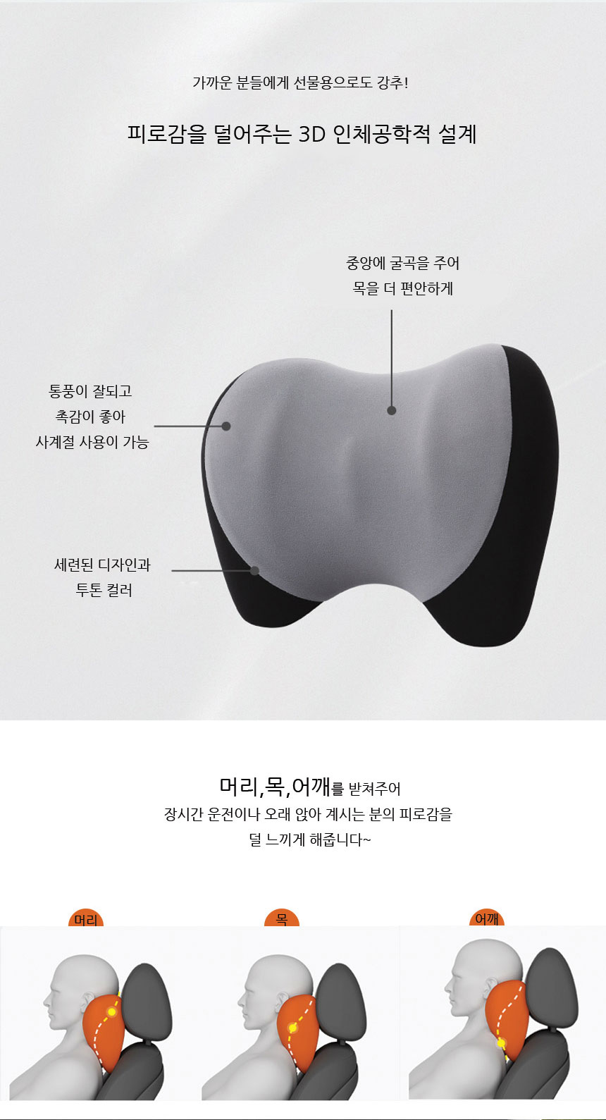 차량용 3D 목쿠션 메모리폼 자동차 목베개 헤드레스트
