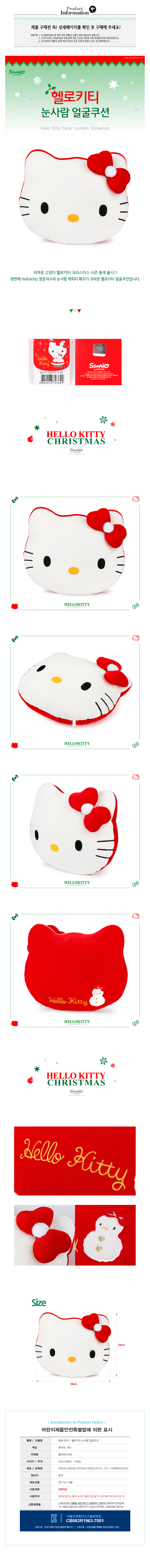 크리스마스 헬로키티 얼굴 쿠션 (36cm) 이미지/