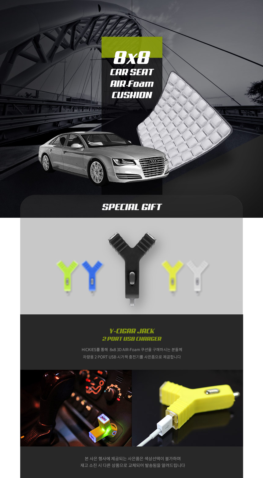 8x8 인체공학 3D에어쿠션 방석 USB시가잭 사은행사
