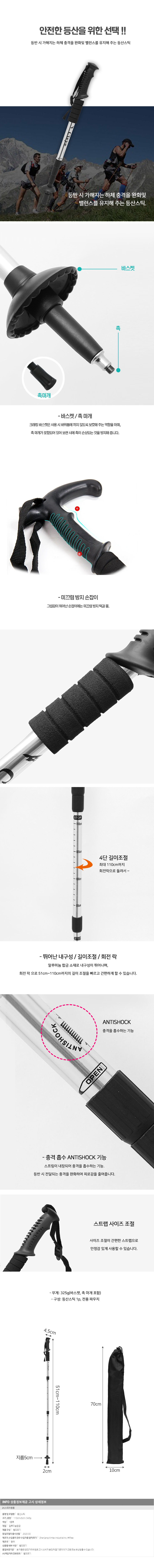 충격흡수 하이킹 등산 스틱 지팡이 (4단 I형 실버)