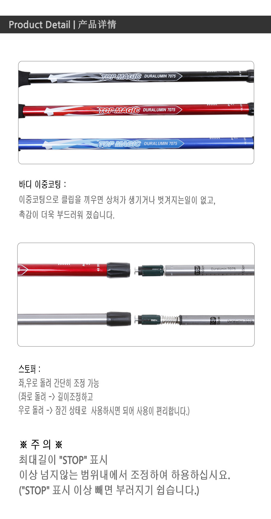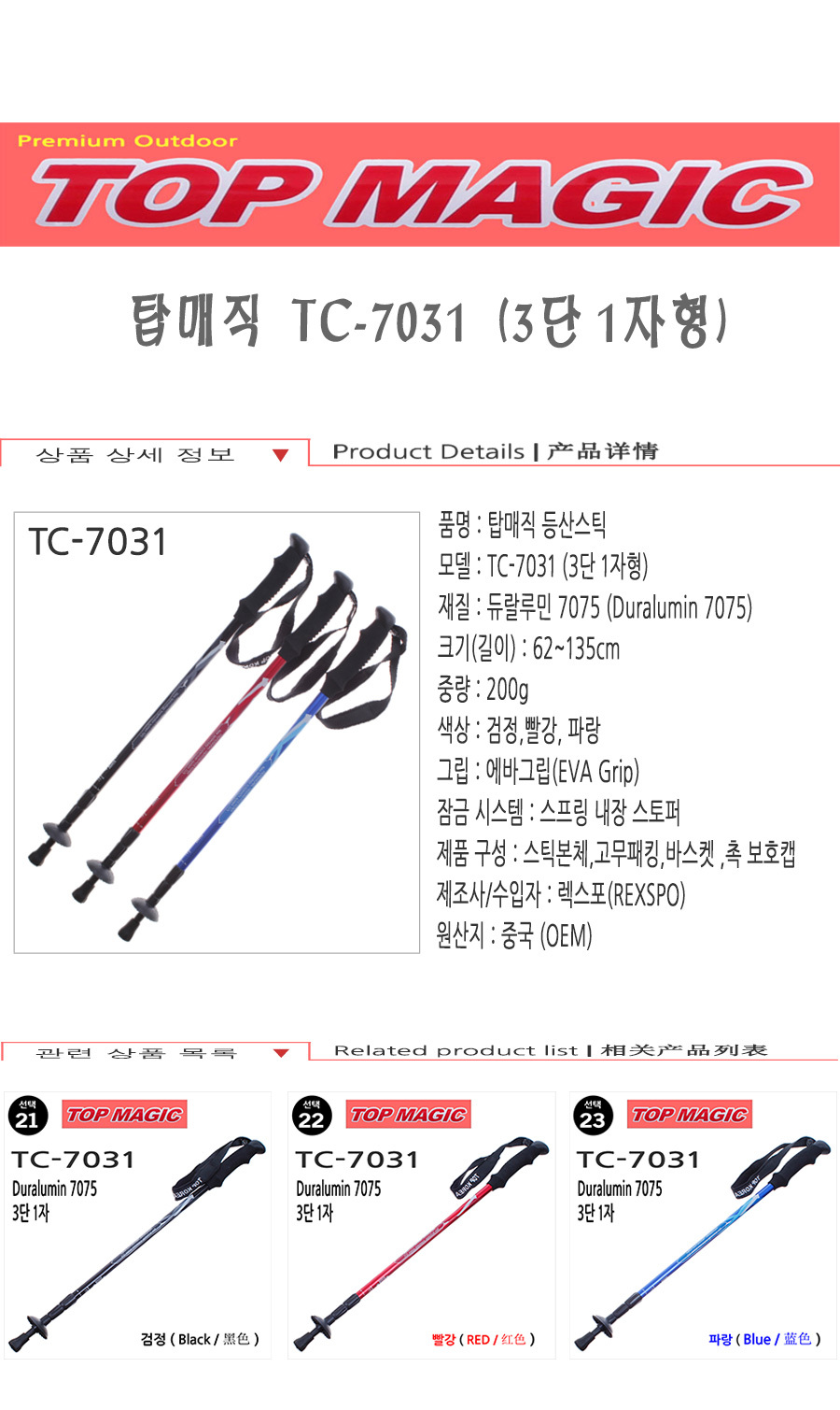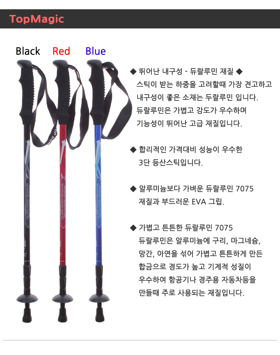 등산스틱 탑매직 TC-7031 3단 1자 트레킹폴 픽켈 지팡이 이미지/