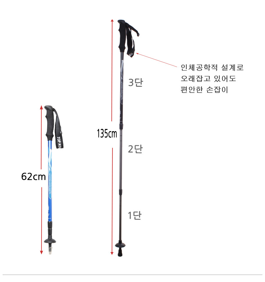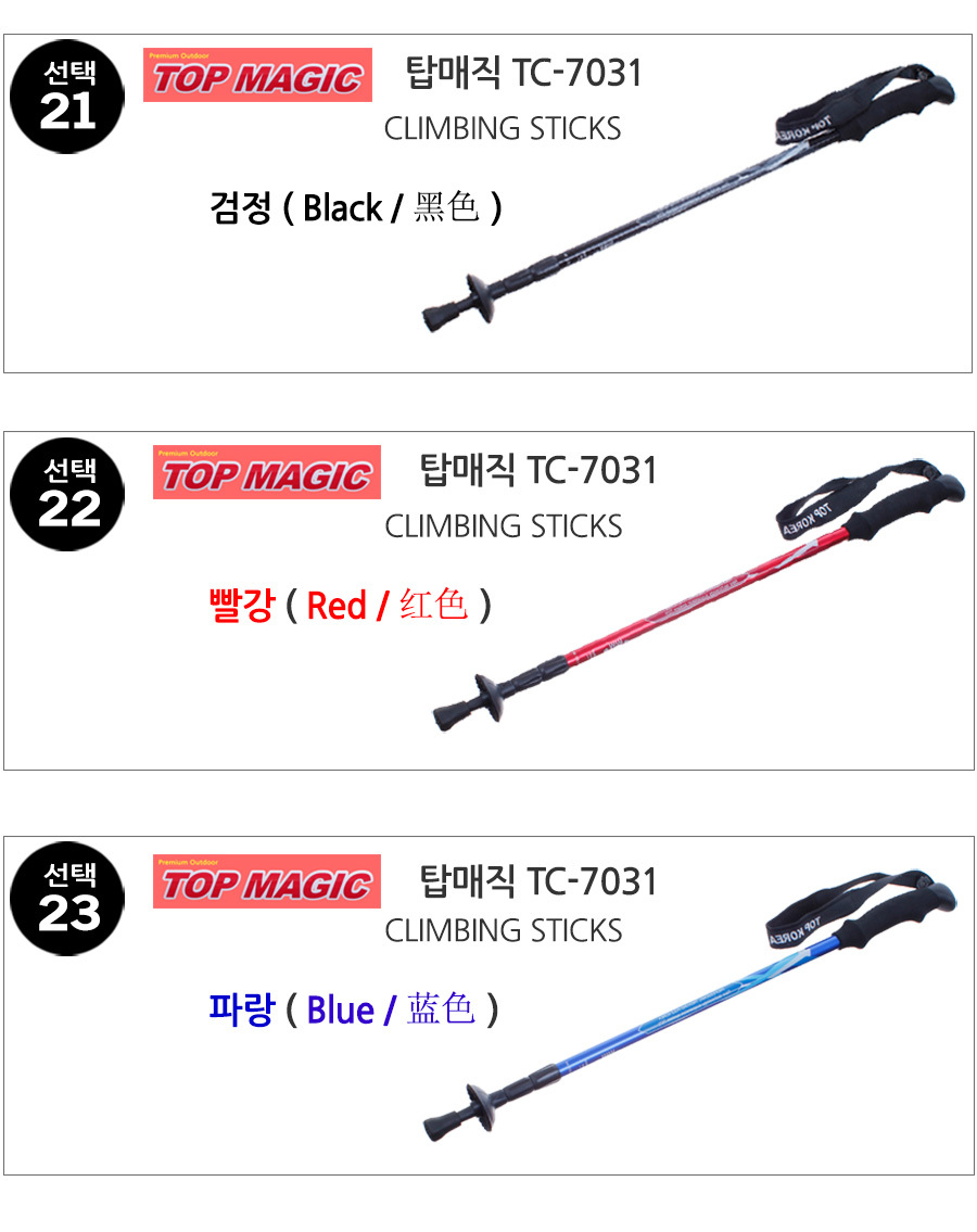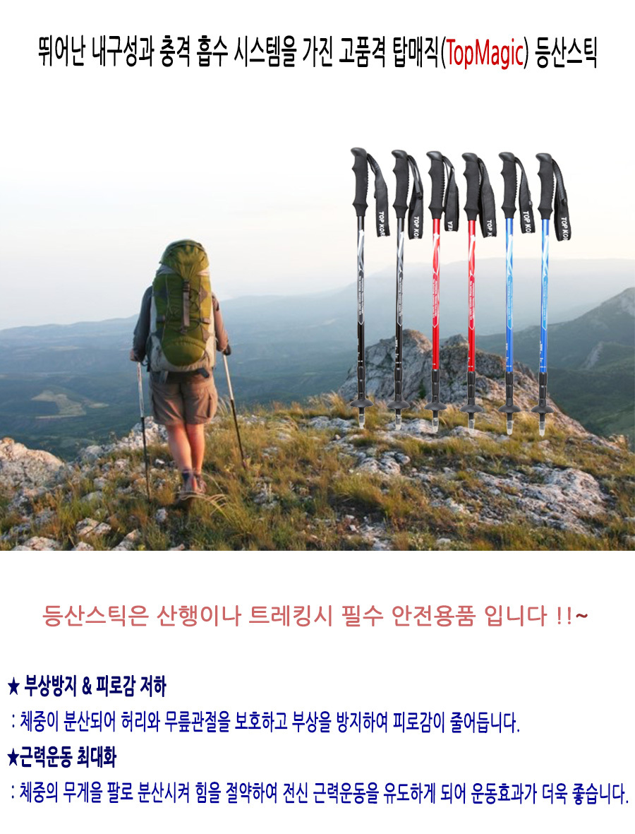 등산스틱 탑매직 TC-7031 3단 1자 트레킹폴 픽켈 지팡이