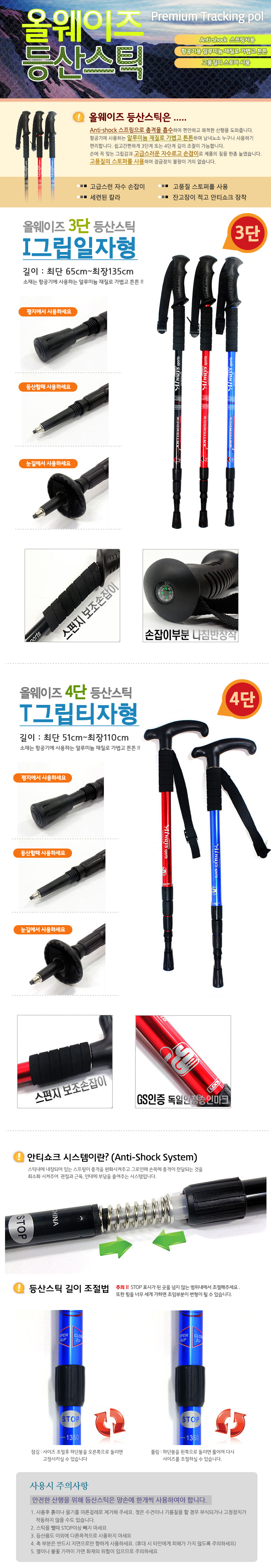 충격흡수 가벼운 알미늄 등산스틱 (4단 T자 랜덤)
