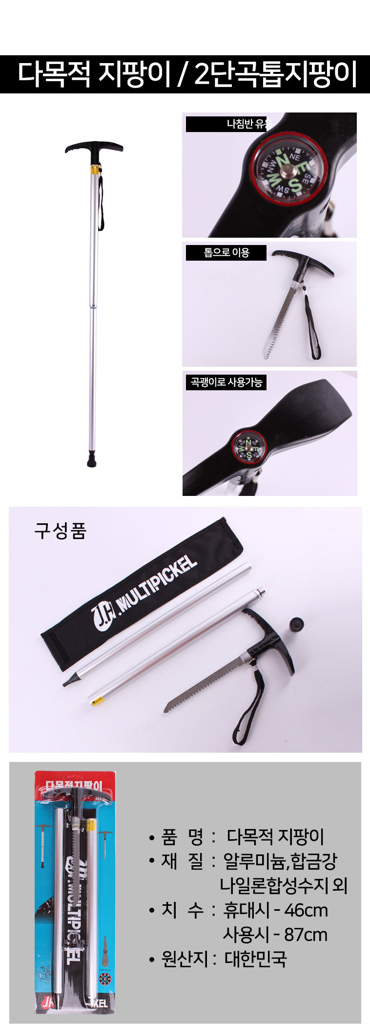 다목적 지팡이(2단곡톱)