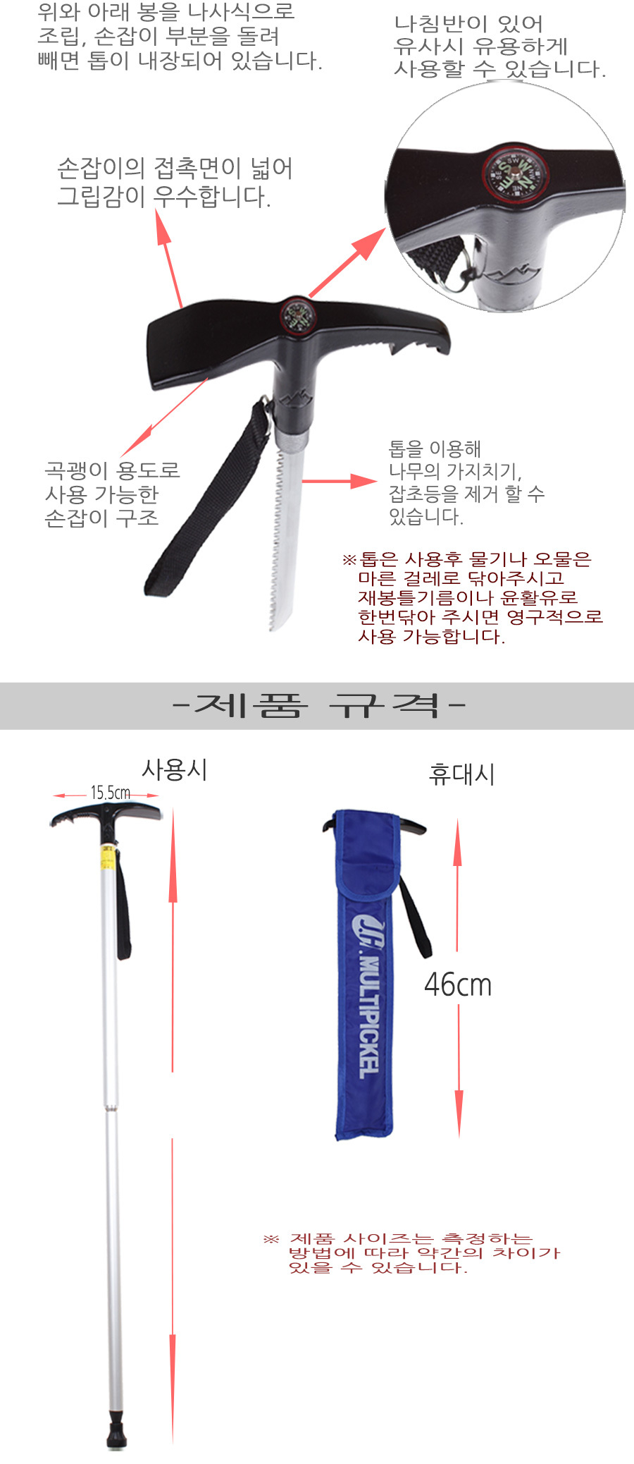 다목적지팡이 스틱 다기능 다용도 2단조립식 톱 국산