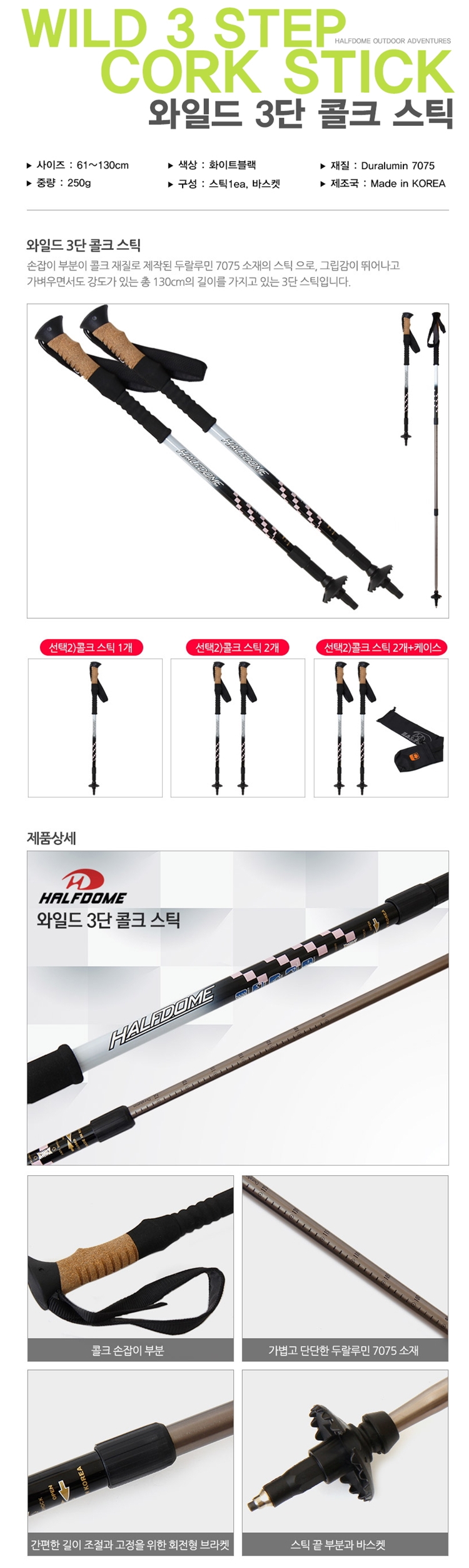 [HALFDOME] 와일드 3단 콜크스틱