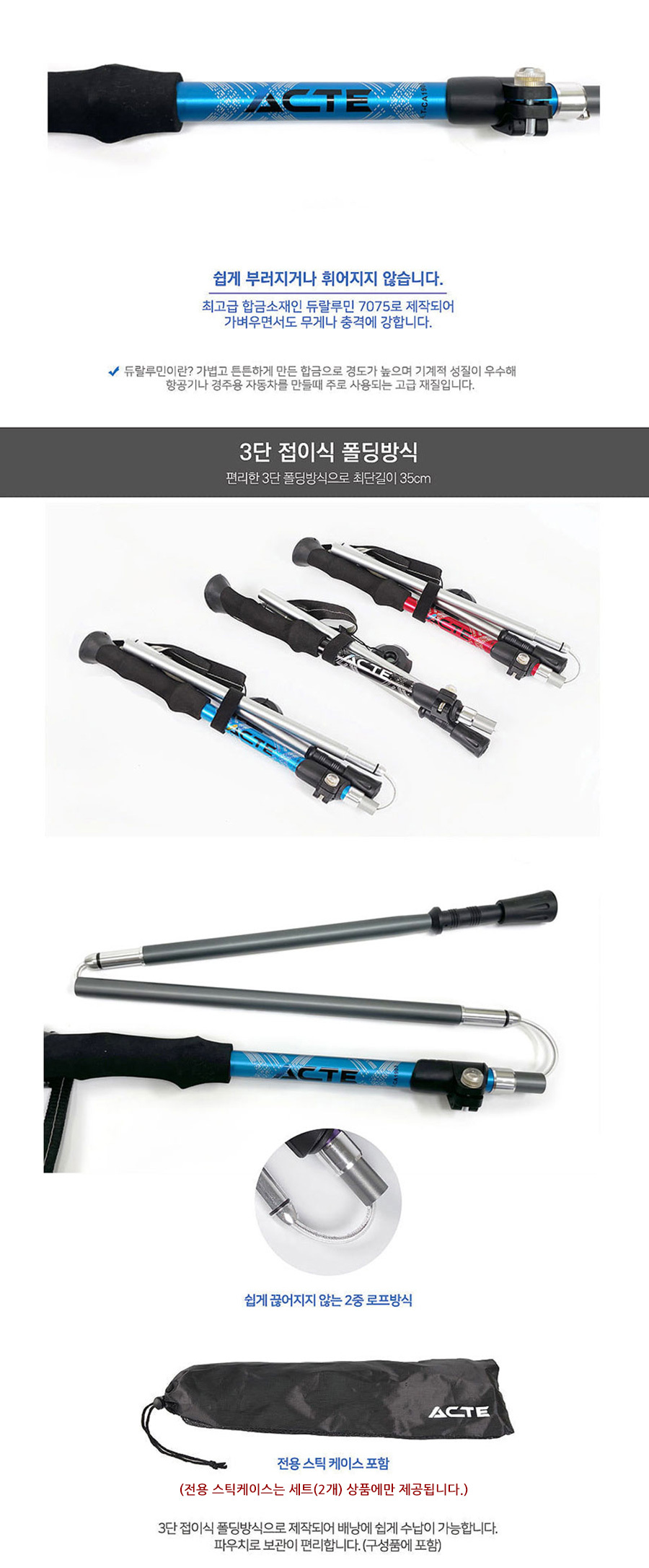 웰스타 CA1903 등산스틱 접이식 폴딩스틱 듀랄루민 5단스틱