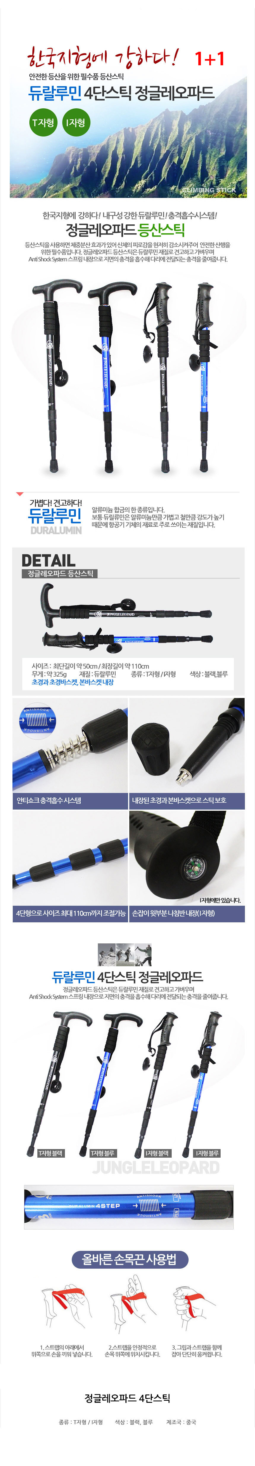T자형 I자형 4단 등산스틱 정글레오파드 1+1/등산스틱 이미지/