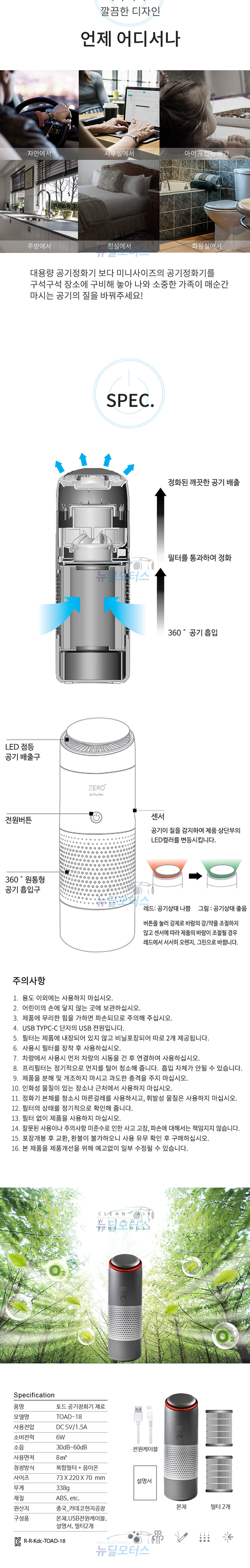 ETC 차량용 공기 청정기 미니 다용도 정화기