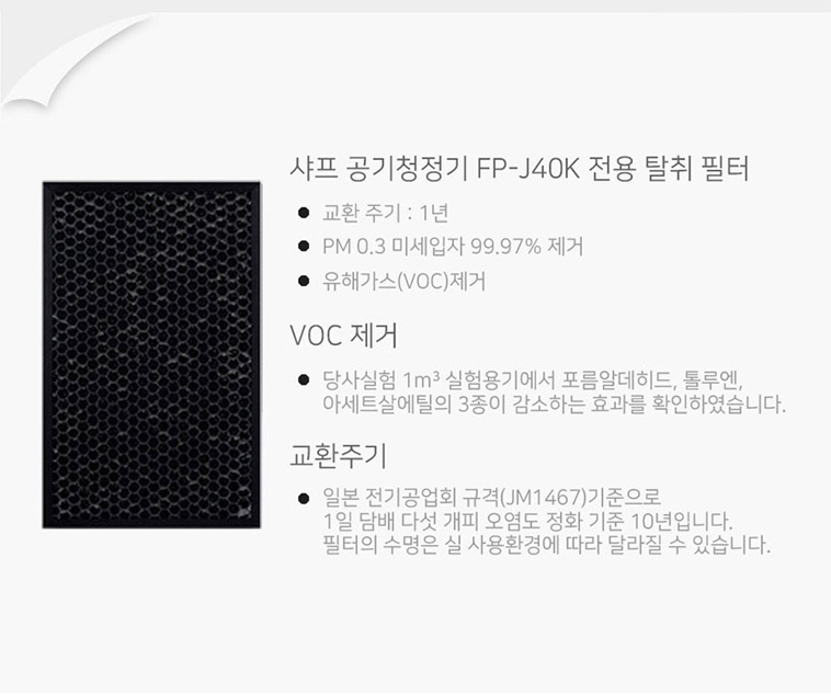샤프 공기청정기 호환용 필터 FP-J40K 전용 헤파필터 / FP-J40K 전용 탈취필터