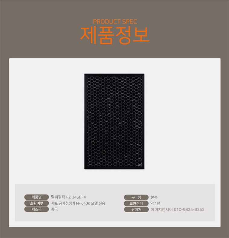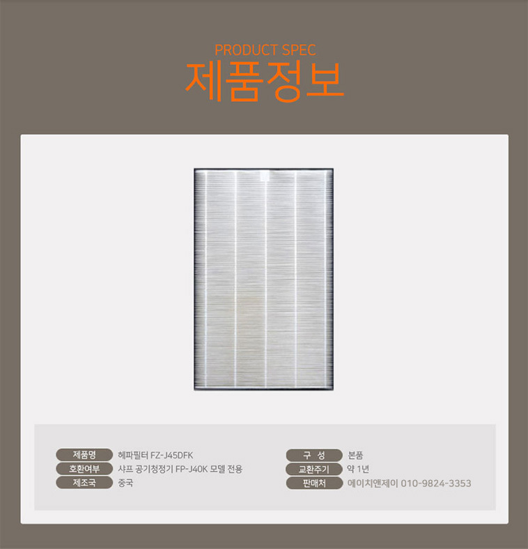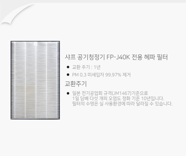 1. 품명 및 모델명 : 샤프 공기청정기 호환용 필터 FP-J40K 전용 헤파필터 / FP-J40K 전용 탈취필터