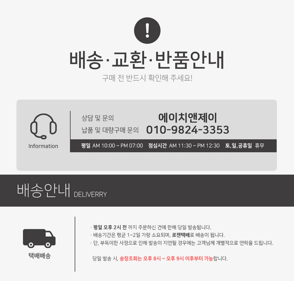 • 다른 제품과 같이 주문할 경우 따로 배송됨을 말씀드립니다.
