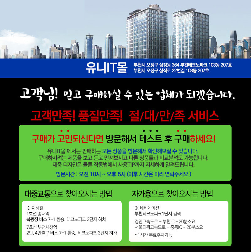 • 초기제품 이상의 경우 동일한 제품으로 1:1 교환원칙, 사용후 제품이상은 A/S를 원칙으로 합니다.