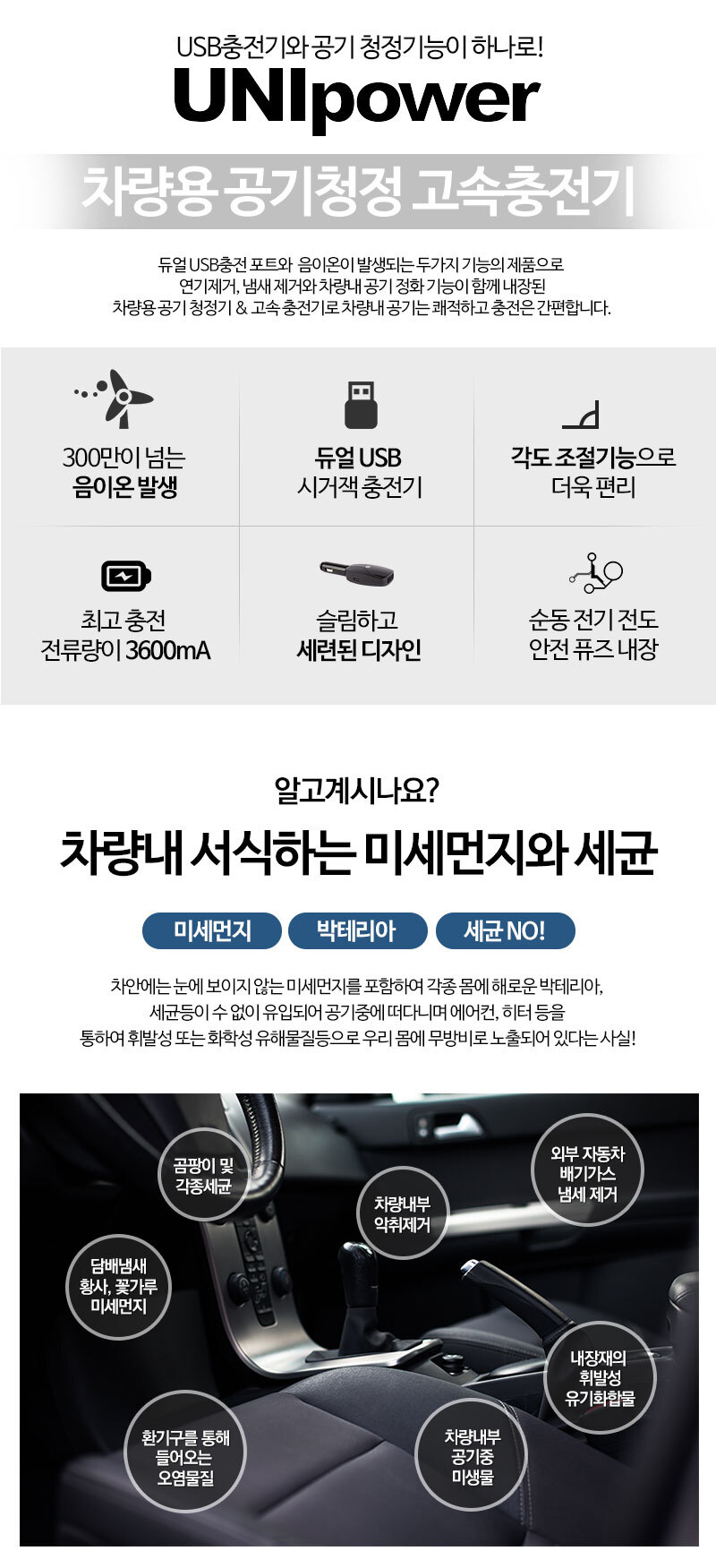 고속충전 겸용 차량용공기청정기 3.6A UCP-012 듀얼USB 이미지/