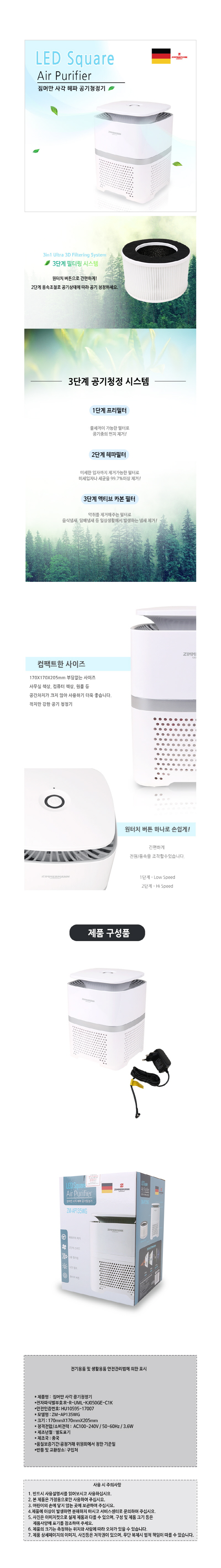 짐머만 사각 헤파 공기청정기 이미지/