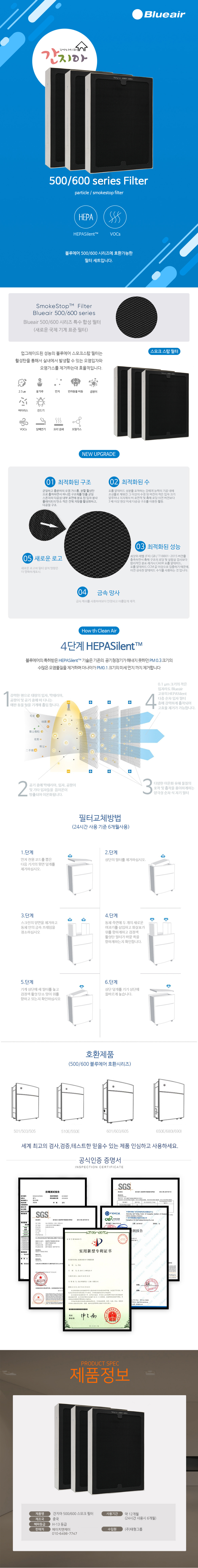 1. 품명 및 모델명 : 1+1호환용 블루에어 공기청정기 500 스모크스탑 필터