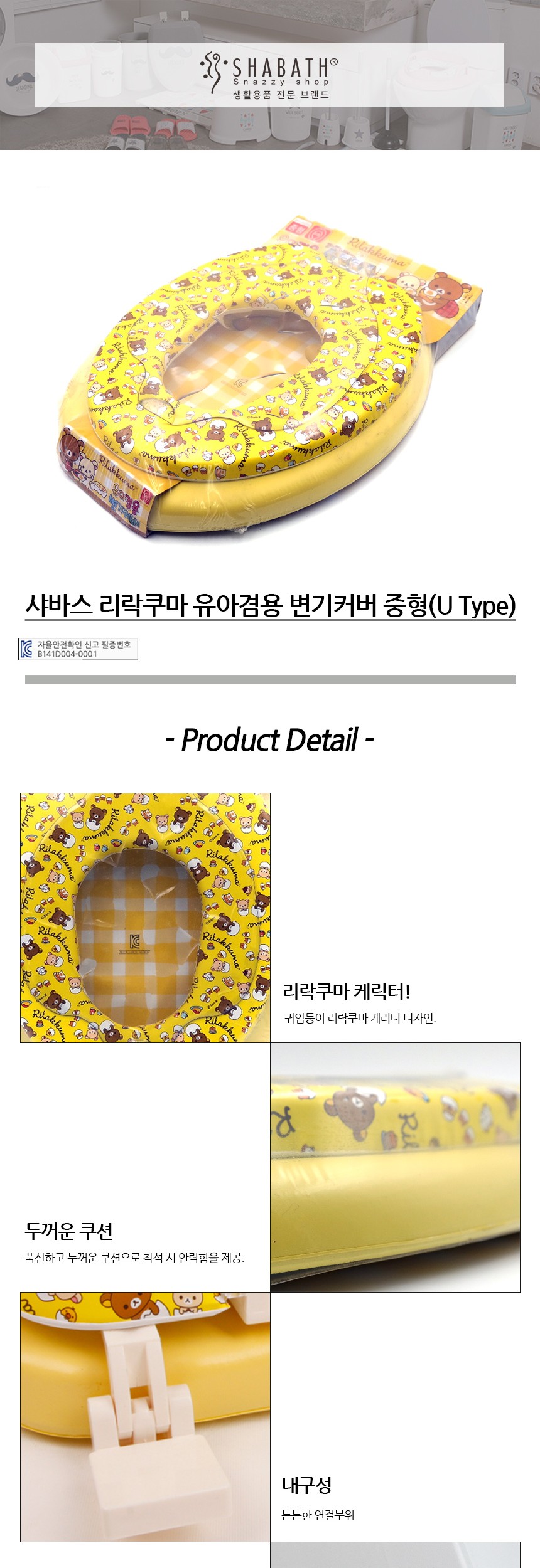 샤바스 리락쿠마 유아겸용 중형 변기커버 U형