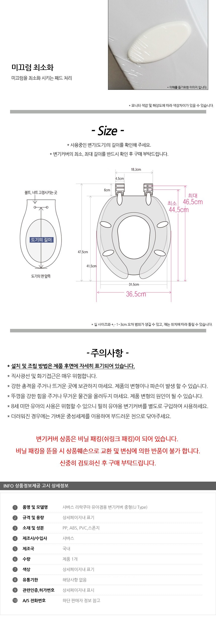 샤바스 리락쿠마 유아겸용 중형 변기커버 U형 이미지/