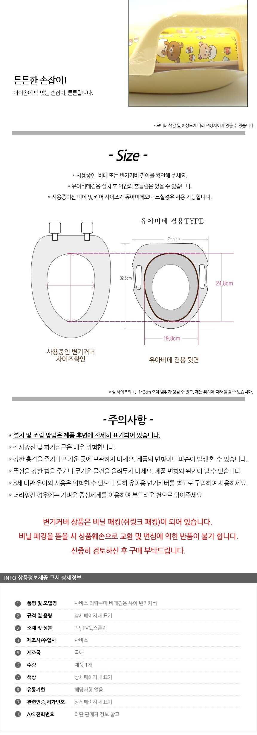 샤바스 리락쿠마 비데겸용 유아 변기커버 이미지/