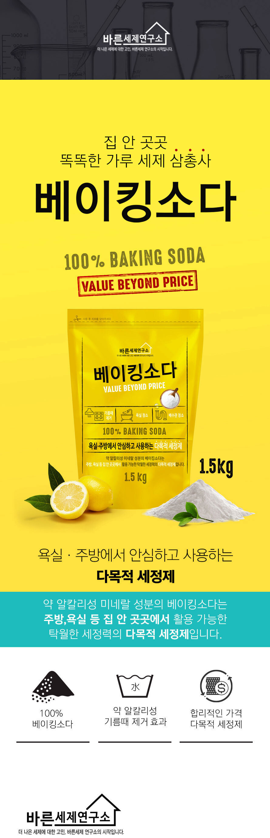 바른세제연구소 베이킹소다 1.5kg/ 기름때제거/ 다목적 세정제