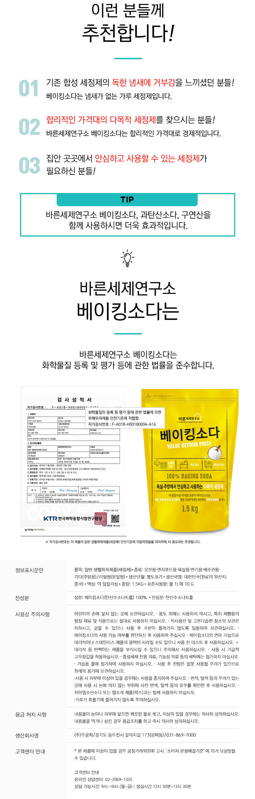 바른세제연구소 베이킹소다 1.5kg/ 기름때제거/ 다목적 세정제 이미지/
